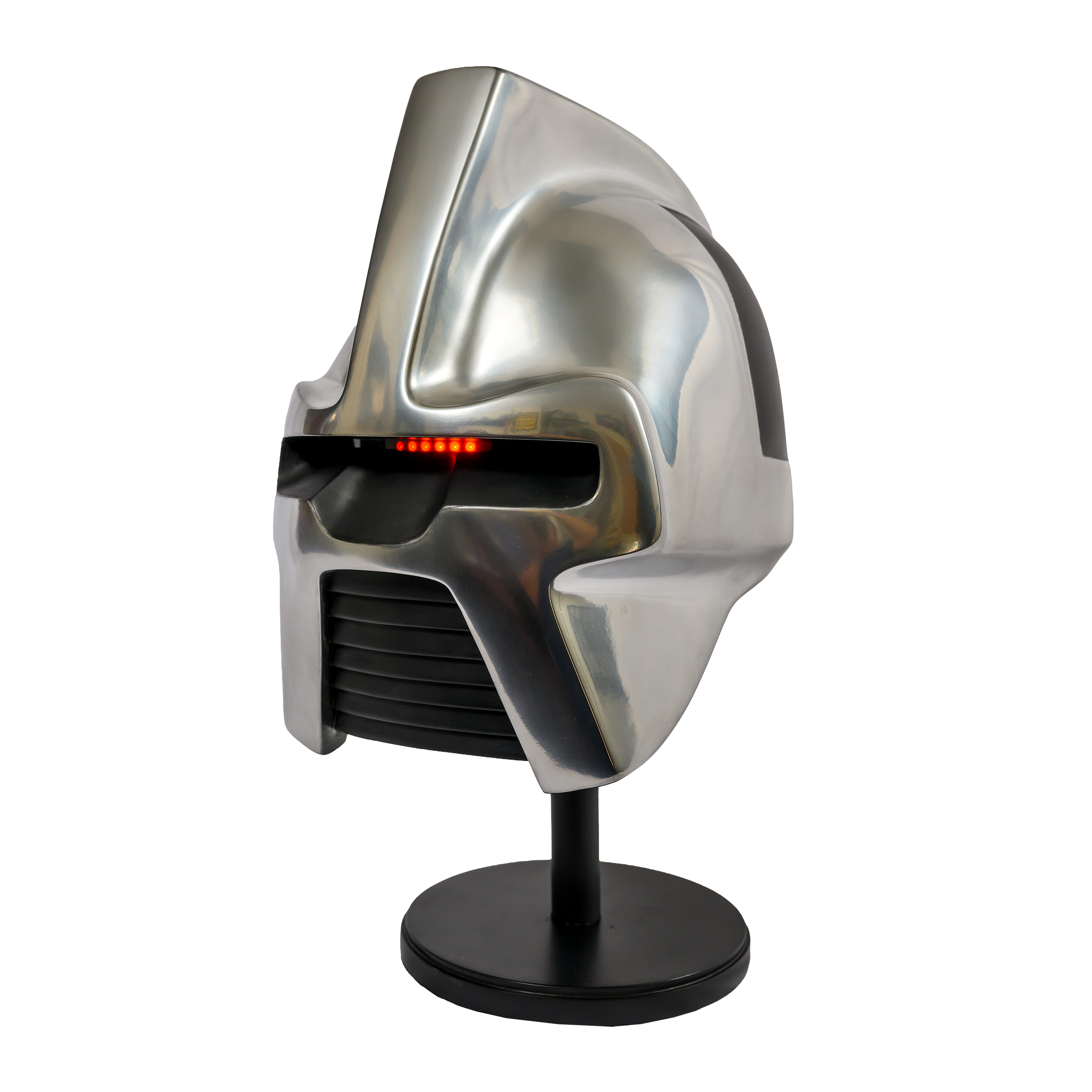One of the most enduring symbols of Battlestar Galactica, the Cylon Centurion Helmet has been recreated using digital scans of a surviving original prop to ensure exceptional accuracy. Enhancements include a seamless exterior finish, a durable multi-stage paint system, and modern LED technology that replicates the iconic sweeping red “eye” effect. Integrated sound effects sourced from the original production and remote-controlled light and audio functions elevate this piece into a true centerpiece collectible.